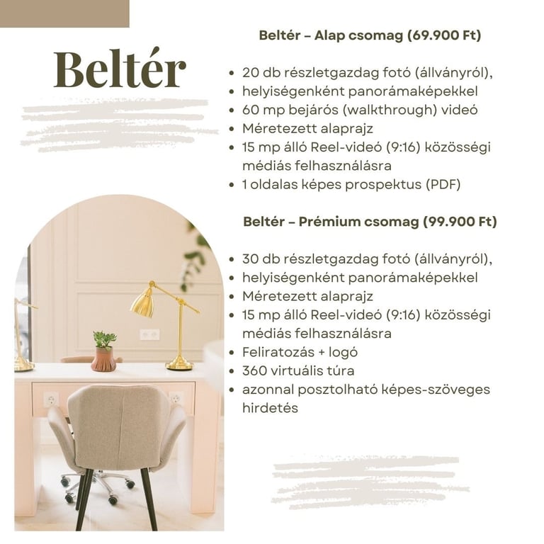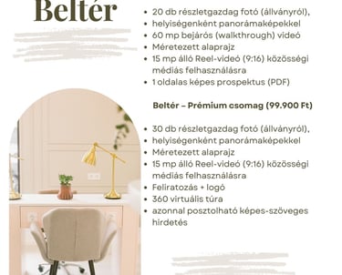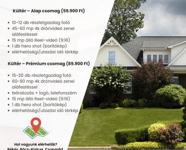 Helyszíni időkeret - beltér (90-120 perc/ingatlan), kültér időjárásfüggő