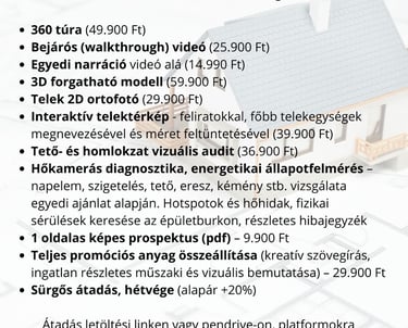 Az átadott anyag nem hatósági vagy mérnöki szakvélemény, hanem vizuális, drónos döntéstámogató dokumentáció. A helyszínen és felülnézetből látható állapotokat, eltéréseket rögzíti, és segít eldönteni, hol indokolt további szakértő bevonása.